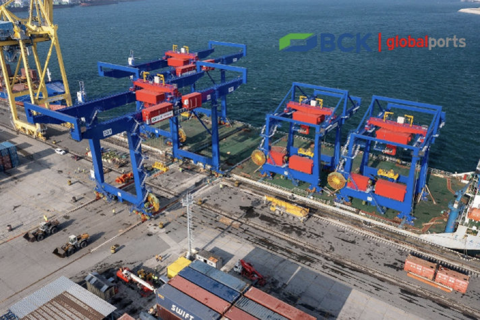 The “Vostochnaya Stevedoring Company” (VSK, part of the “Global Ports” holding of the “Delo” group of companies) container terminal in the Vostochny port received nine new high-performance container cranes on rails and wheels (RMG and RTG, respectively).