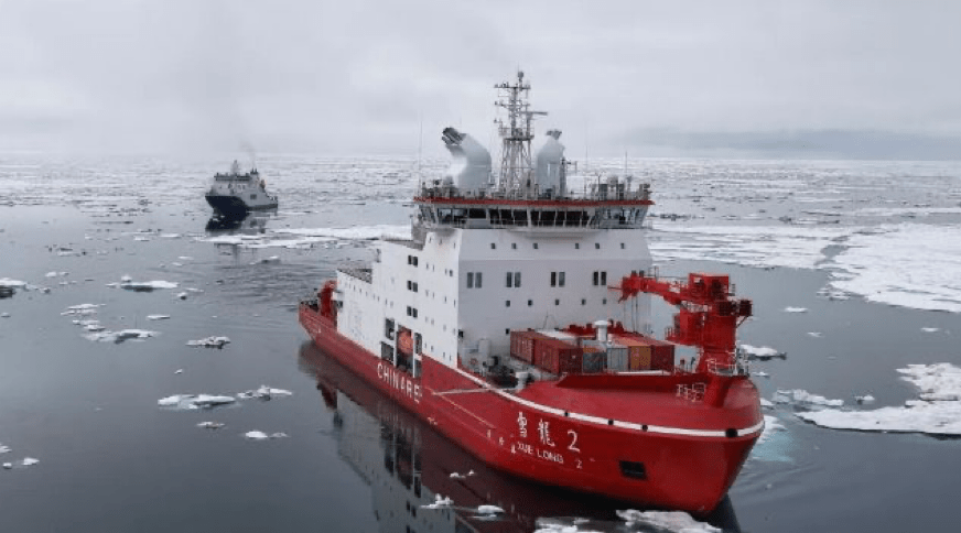The expedition was organized by the Chinese Ministry of Natural Resources and was the largest in terms of the number of vessels involved – the support vessels ‘Jidi’, ‘Shenhai-1’, and ‘Tansuo-3’ accompanied the icebreaker.