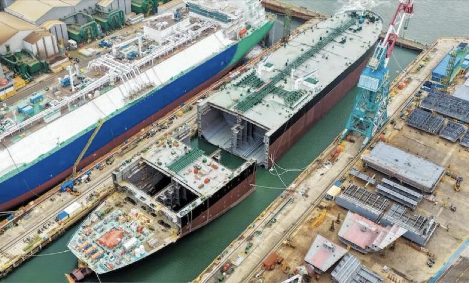 HD Hyundai Heavy Industries (South Korea) has introduced a new approach to shipbuilding based on the ‘distributed shipyard’ principle. For a 157,000-ton tanker, the company used a “halves” construction method, which was then joined together.