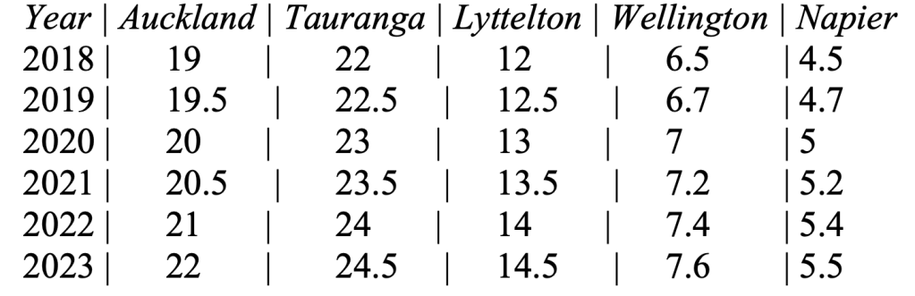- Container ships (up to 18,000 TEU at Tauranga port)